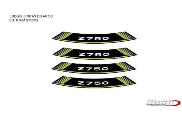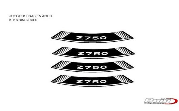 Liseret pour jantes de la marque Puig avec le logo de Kawasaki Z750 - donne un look "circuit" à ta moto. Facile à appliquer et livrable en différentes couleurs