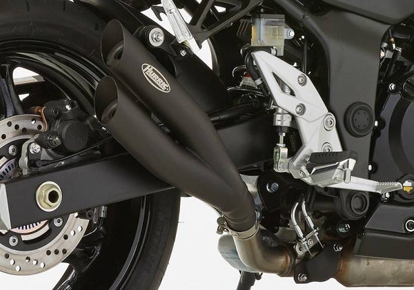 - Le double silencieux Hurric extravagant est en acier inoxydable poli et donne à votre moto un look futuriste et agressif