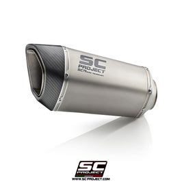 Silencieux en titane de Sc Project avec de-cat 2-1. Disponible en version carbone ou titane. Ce silencieux est livré SANS DB Killer et n’est PAS homolgué pour un usage routier. For racing use only.